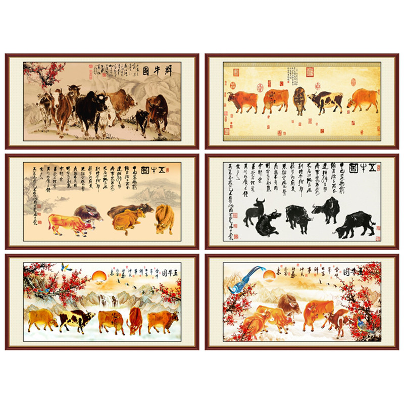 自粘贴五牛图中国名画镇宅招财装饰画画芯无框客厅沙发背景墙群牛热门设计联盟服务商
