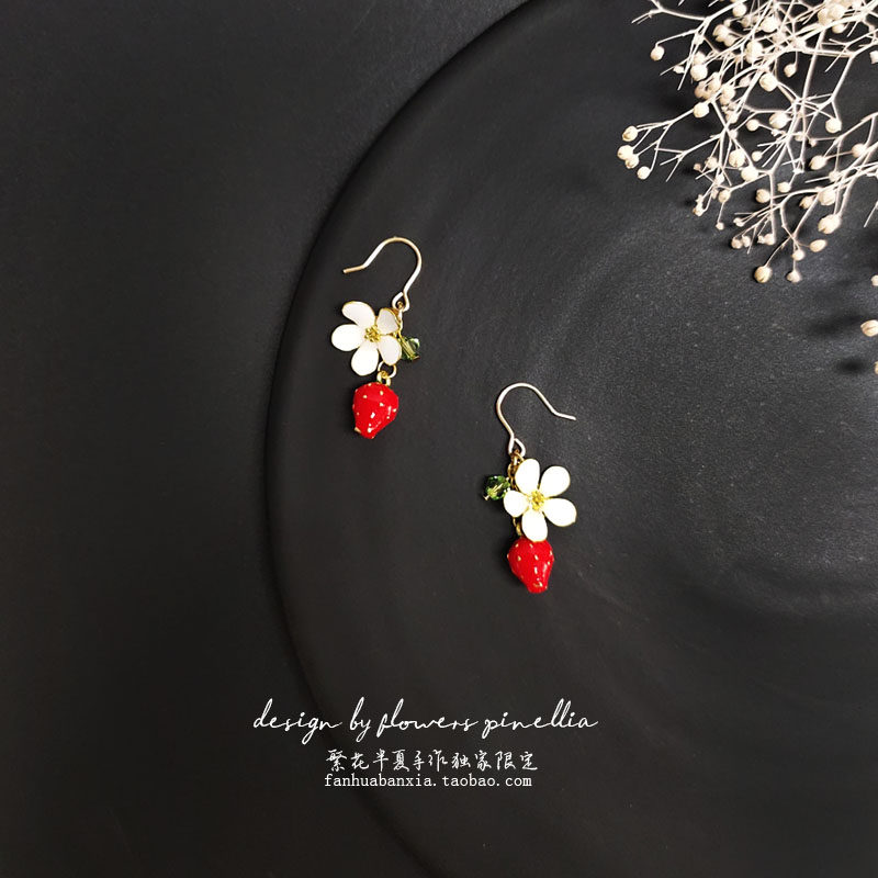 2021网红款草莓小花耳环耳夹日系少女精致甜美可爱小清新礼物女热门设计联盟服务商