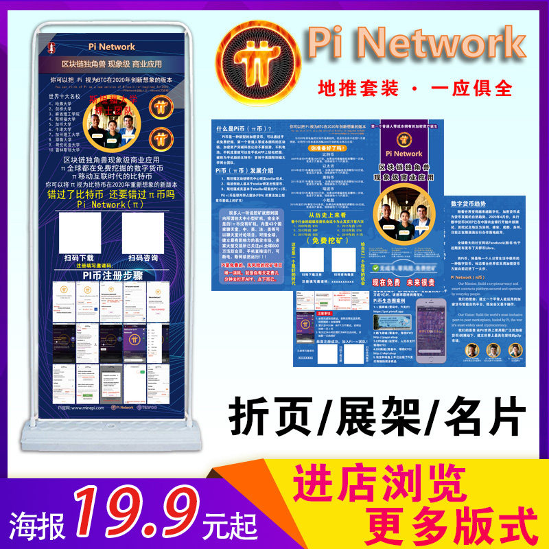 Pi币派币地推展架宣传单名片三折页海报x门型易拉宝定制物料热门设计联盟服务商