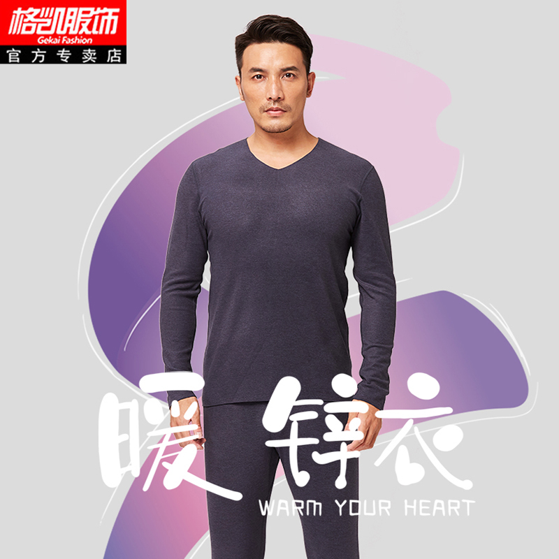 格凯服饰无痕V领男士加厚磨毛秋衣秋裤套装双面薄绒发热暖锌衣热门设计联盟服务商
