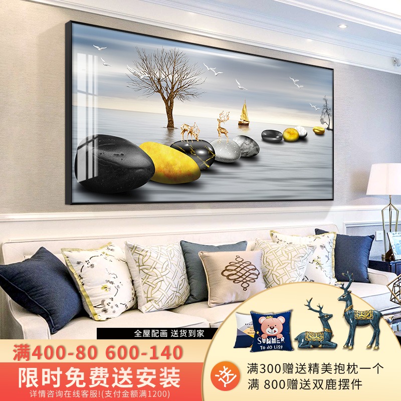 大气客厅装饰画现代简约横幅沙发背景墙壁画镶钻晶瓷画轻奢挂画热门设计联盟服务商