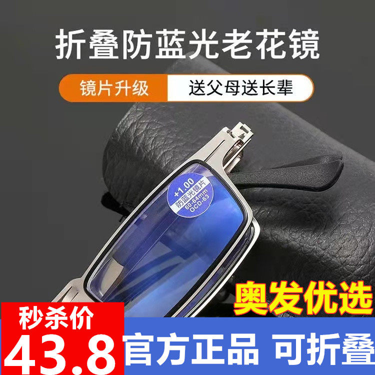 奥发优选店老花镜荣协眼镜折叠防蓝光便携式高颜值无框设计靓伊轩热门设计联盟服务商
