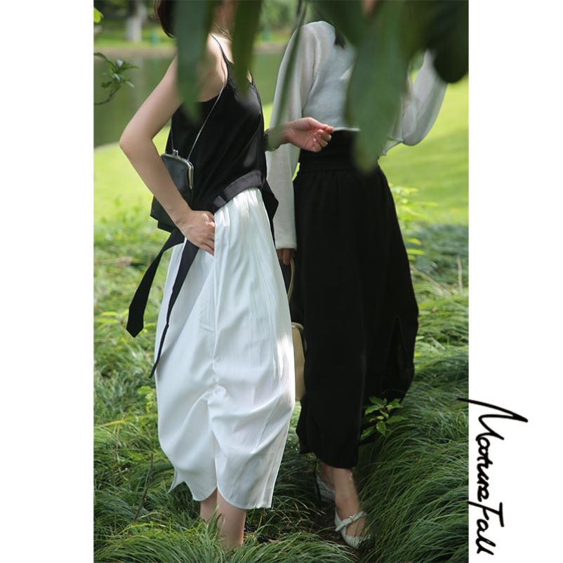 黑白色山本风港味设计感抽绳开叉半身裙女2021夏显瘦中长款花苞裙热门设计联盟服务商