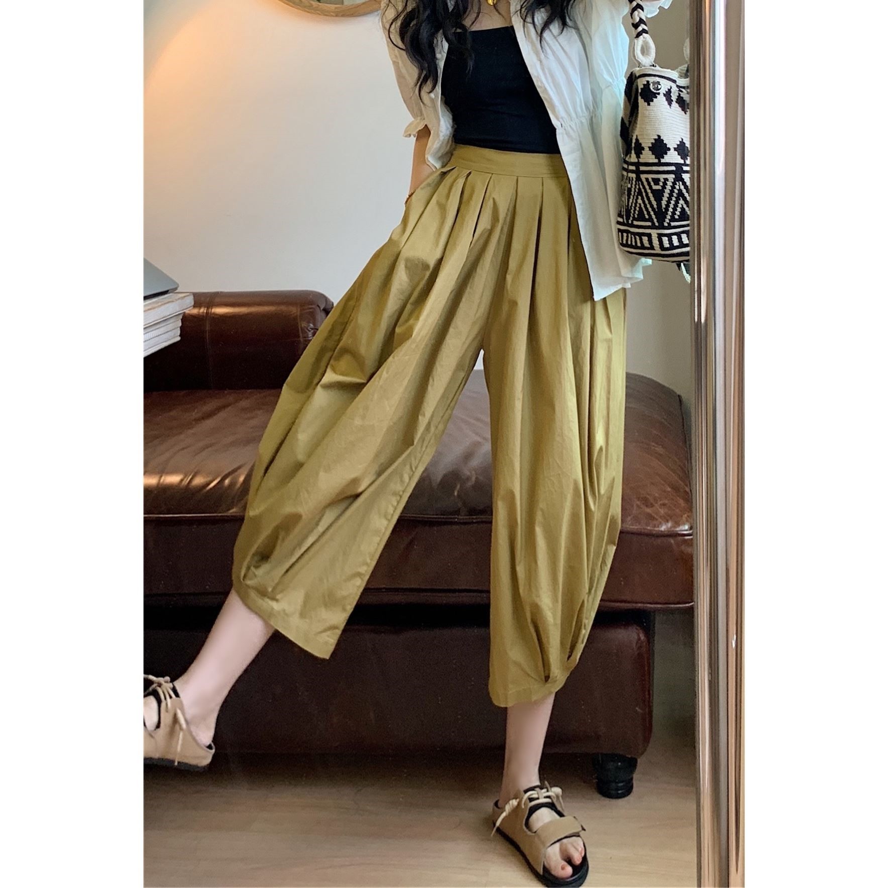 日杂风设计感小众阔腿灯笼裤女夏季薄款高腰大裤腿直筒休闲裤裙裤热门设计联盟服务商