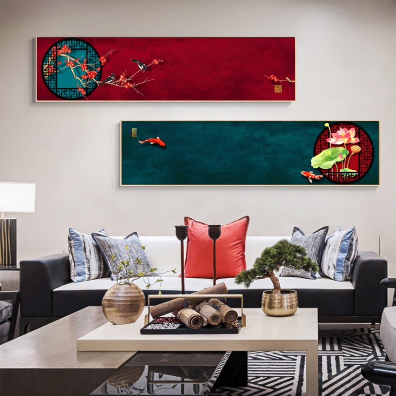 新中式墙面装饰挂画沙发客厅房间墙壁卧室横幅壁画背景墙餐厅床头热门设计联盟服务商