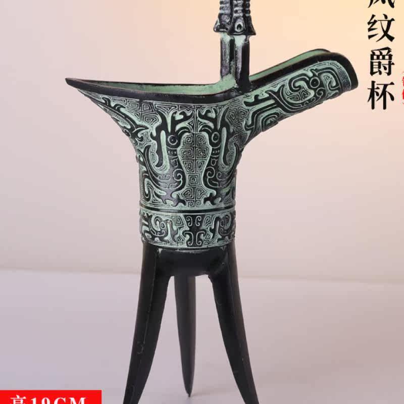 三脚杯青铜器仿冠件艺术复古高脚中式酒樽老式尖形摄影纪念摆设热门设计联盟服务商