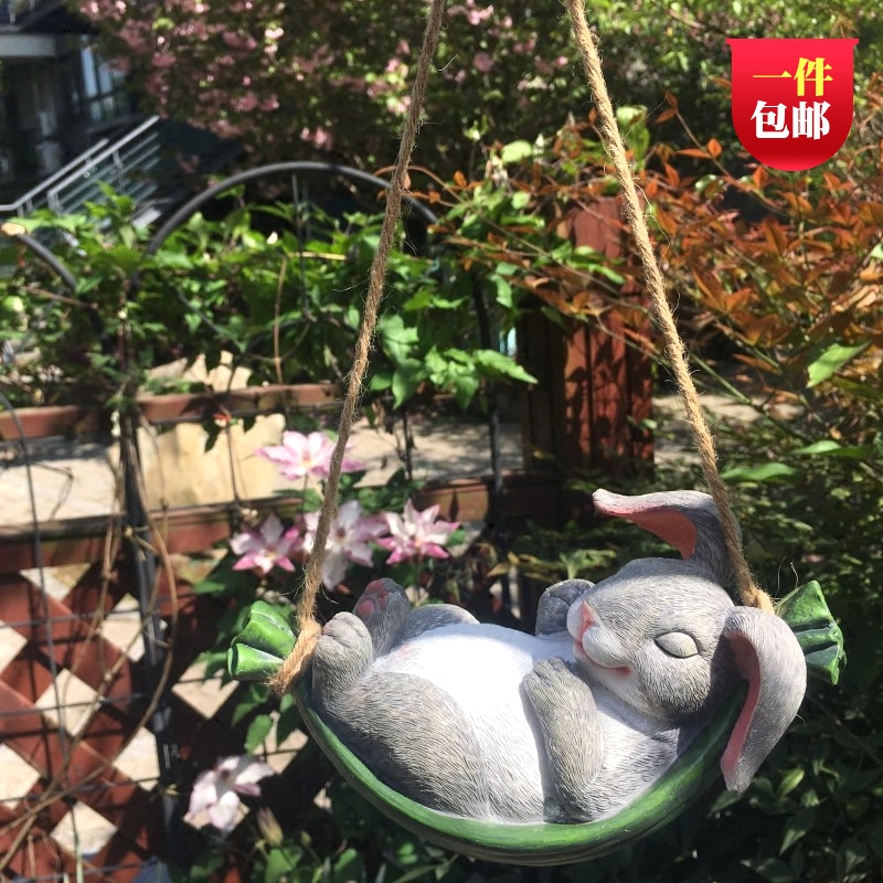 特价促销户外庭院树脂创意动物秋千仿真兔子花园景观装饰挂件热门设计联盟服务商