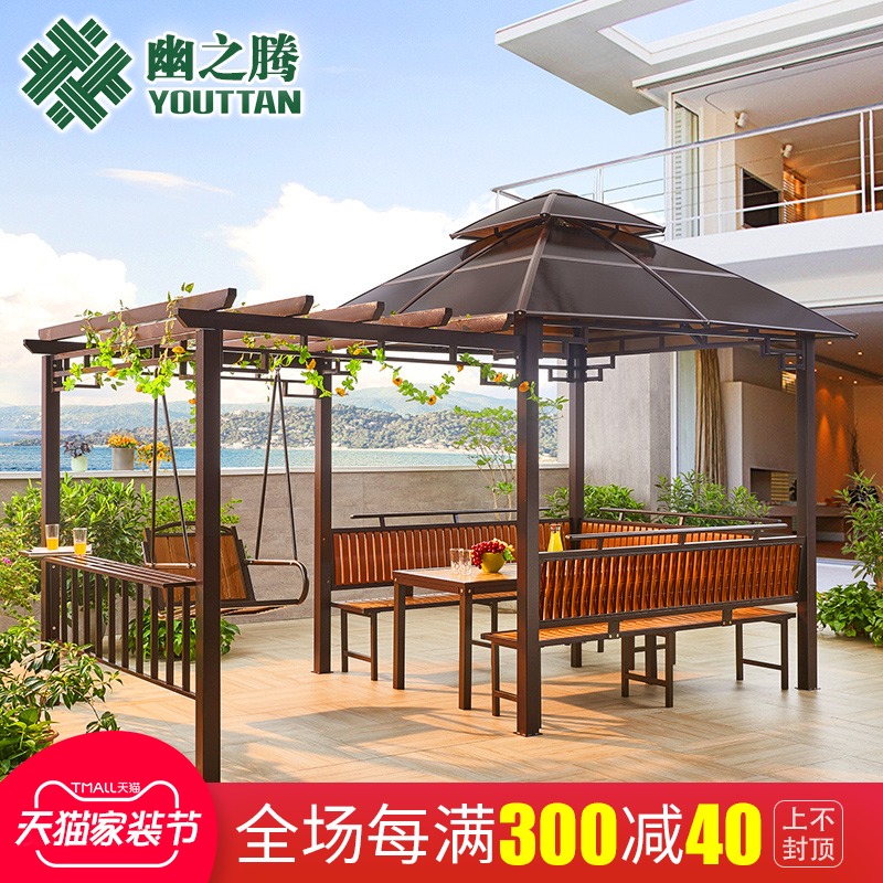 户外凉亭别墅庭院设计帐篷亭子室外露台花园铁艺休闲秋千葡萄架。热门设计联盟服务商