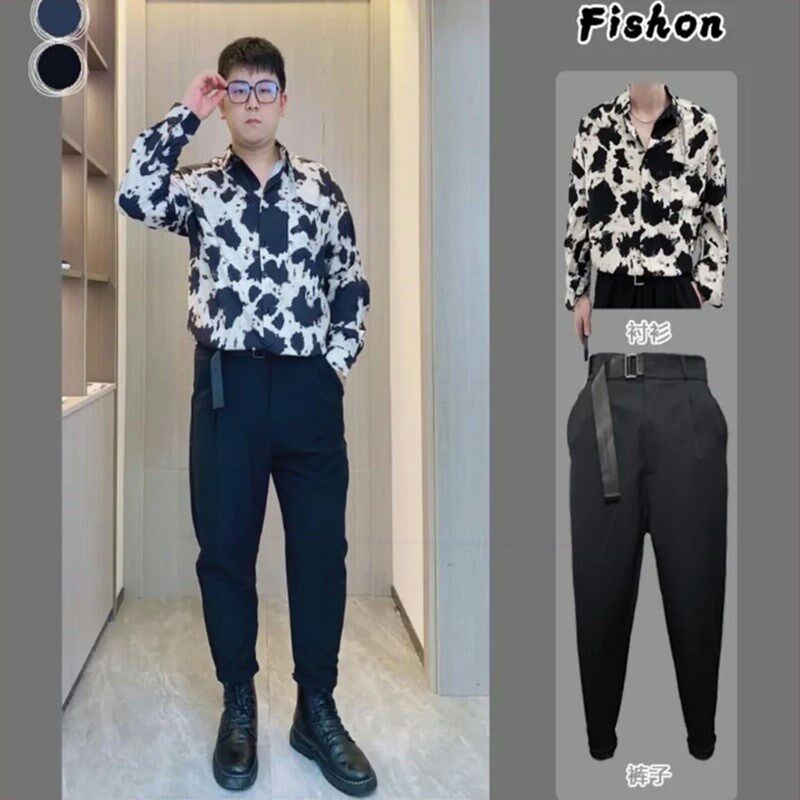 【套装】楼栏服饰秋季设计感扎染印花长袖衬衫男宽松轻熟衬衣外套热门设计联盟服务商