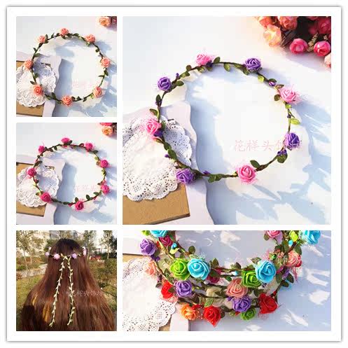 森女花环头饰发饰伴娘头花饰品度假儿童拍照韩式花朵发箍绿叶热门设计联盟服务商