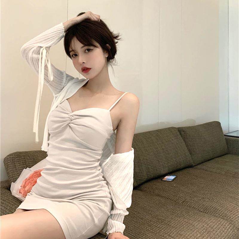 纯欲风辣妹吊带连衣裙套装女夏季新款包臀短裙子+设计感防晒开衫热门设计联盟服务商