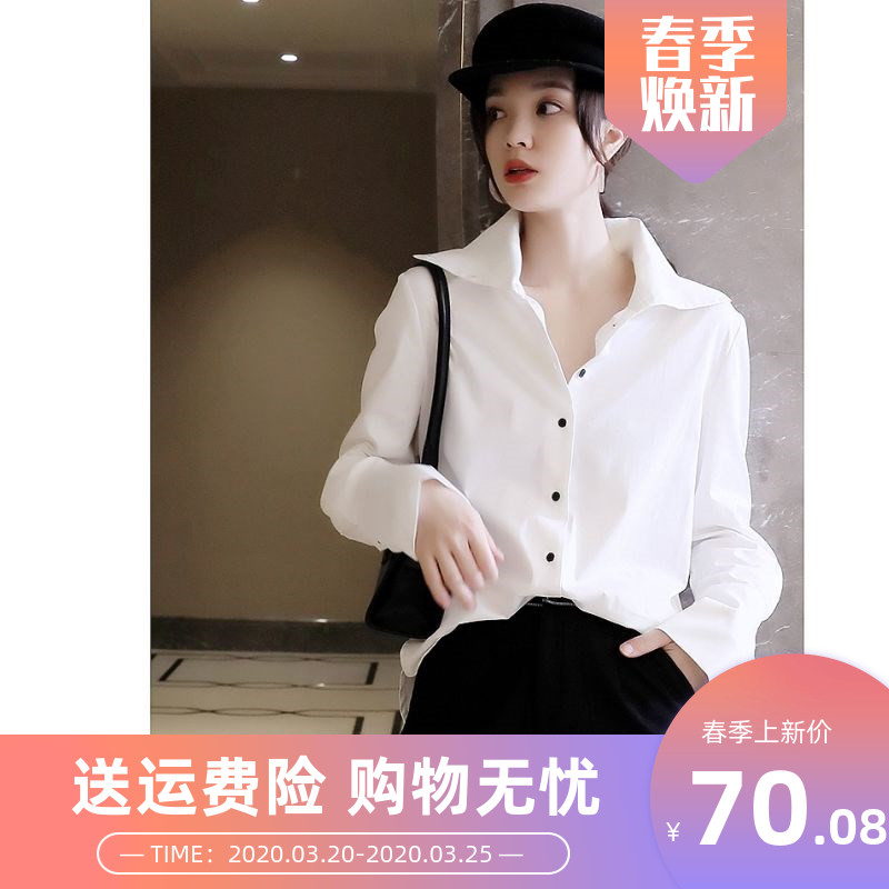 长袖衬衣女小众设计感精梳棉大尖领秋季时尚气质洋气宽松白色衬衫热门设计联盟服务商