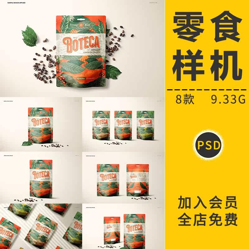 自立式零食品外包装设计VI智能贴图样机自封纸袋效果展示PSD素材热门设计联盟服务商
